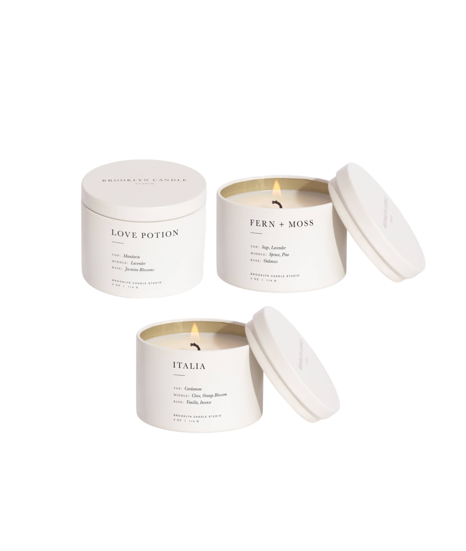 The luxe matte off-white travel-friendly tin is perfect for the office or jetsetting around the globe. Instantly cozify any room with your favorite scent and the warm glow of candlelight. Or scatter them throughout your home give each room a different scent personality.