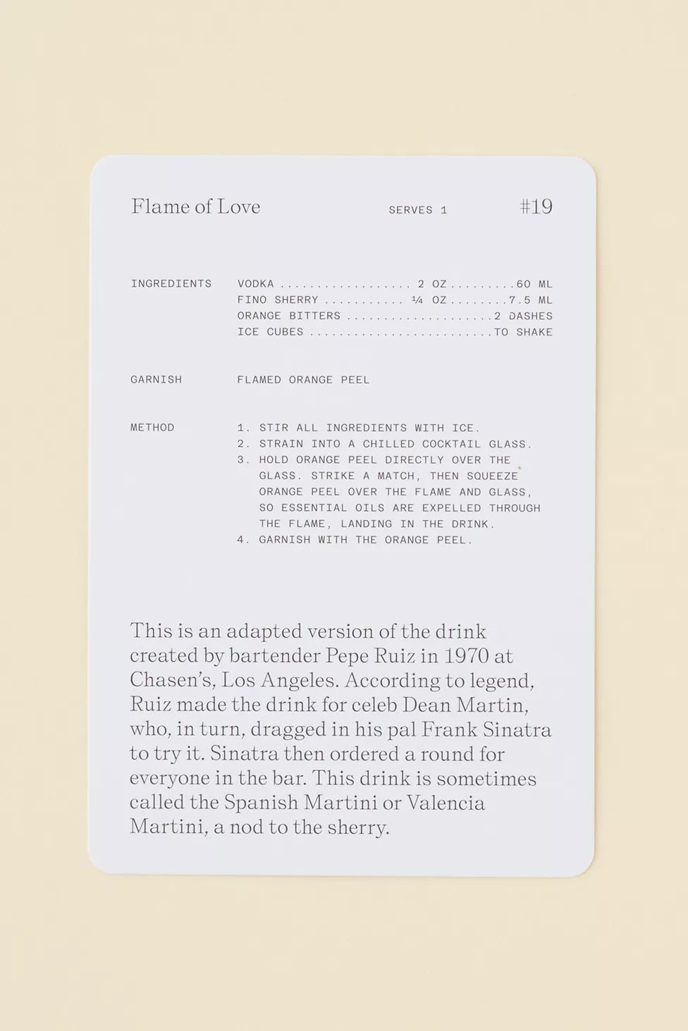 With mid-century-inspired illustrations and easy-to-follow recipes, this deck is the ideal pick for budding mixologists and bartending experts.