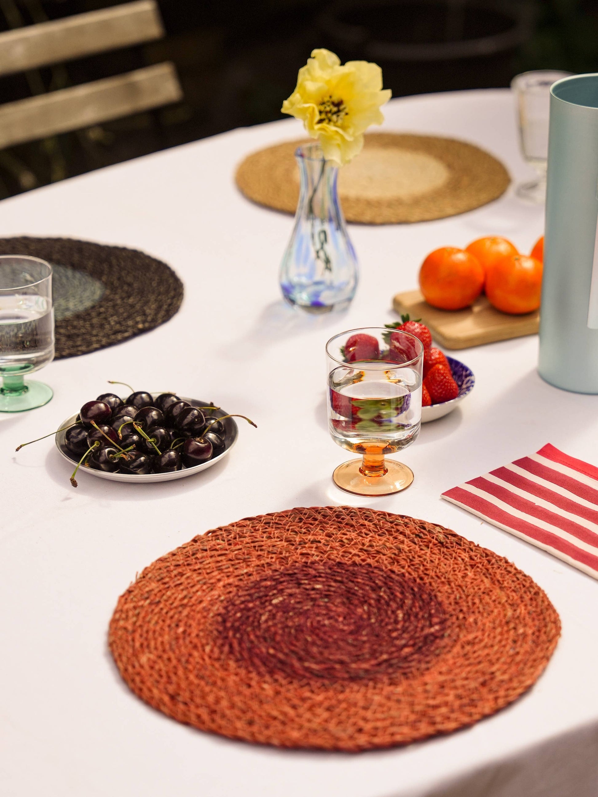 Available in the clear version and two 2-tone versions, for which the glass is blown with clear and solid color glass.