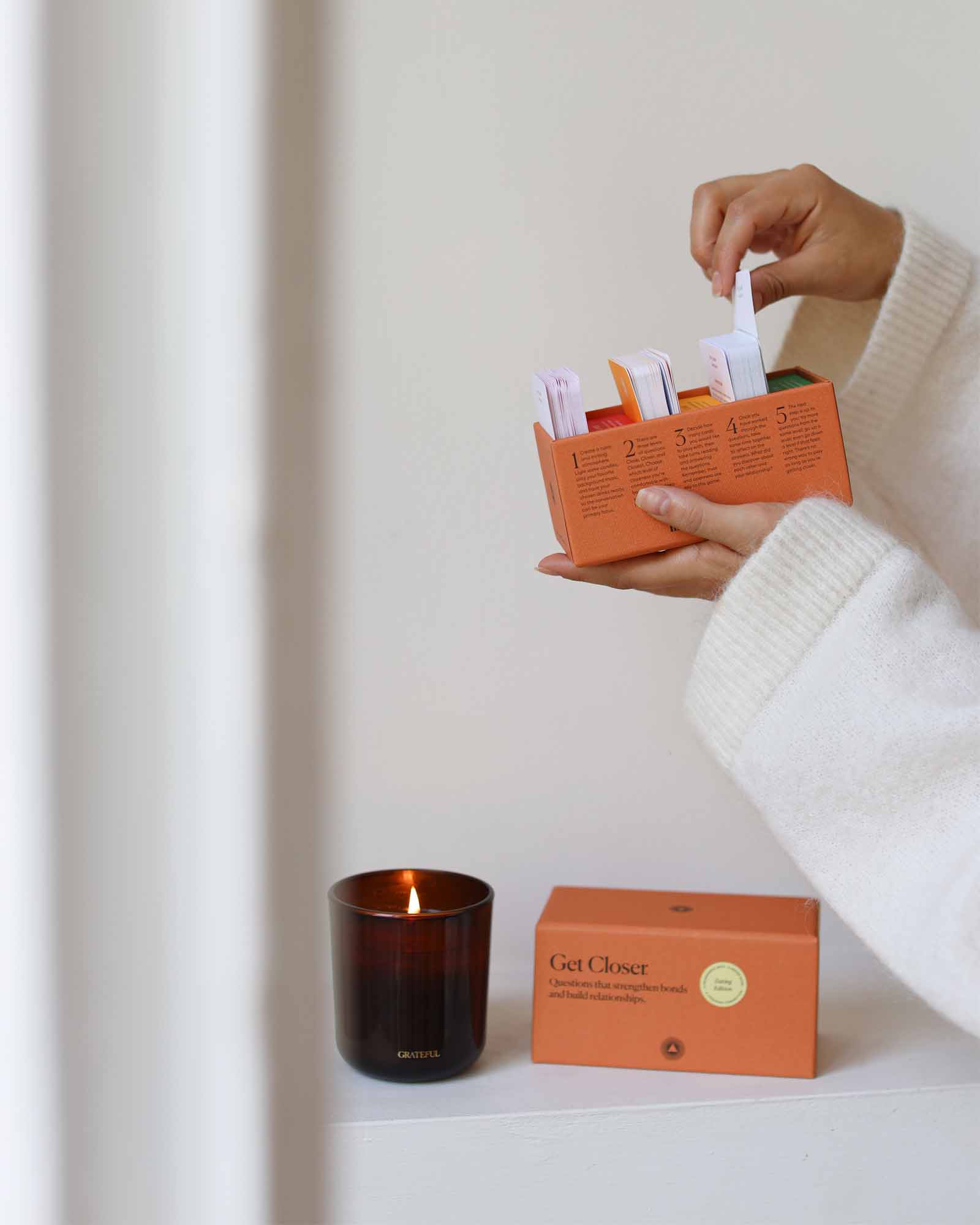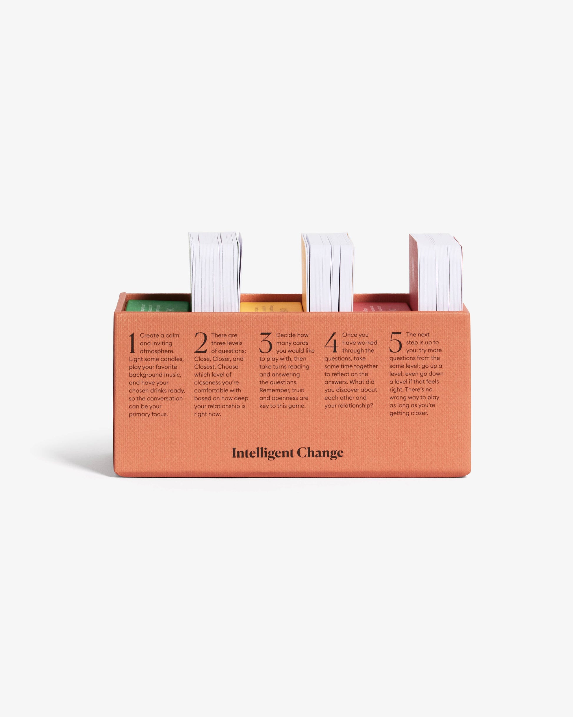 Get Closer Dating Edition is a question card game rooted in positive psychology, designed to explore your common values, life dreams, and priorities right from the start. Dating Edition is designed to help you both connect on a deeper level, nurturing emotional intimacy and replace small talk with genuine closeness. With 100 prompts and three levels, Get Closer Dating Edition sparks conversations that dive beneath the surface, making it a powerful tool for understanding each other better and becoming healthier communicators together. It's a simple yet impactful way to build a solid foundation.